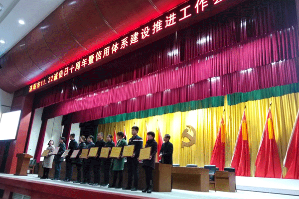 本报讯 为加快社会信用体系建设,倡导诚信守信,恪守承诺的良好社会风气。在洛阳市“11.22诚信日”十周年之际,洛阳市文明办和洛阳市诚信办于2017年11月22日召开全市2017年度“”诚信民营企业”和“诚信建设先进个人”表彰大会。对在2017年度全市涌现出来的践行诚信经营理念,积极履行社会责任,征信记录良好的40家“”诚信民营企业”和15名“诚信建设先进个人“给予表彰,并颁发了荣誉证书和奖牌。河南耿力工程设备有限公司荣膺“诚信民营企业”光荣称号。